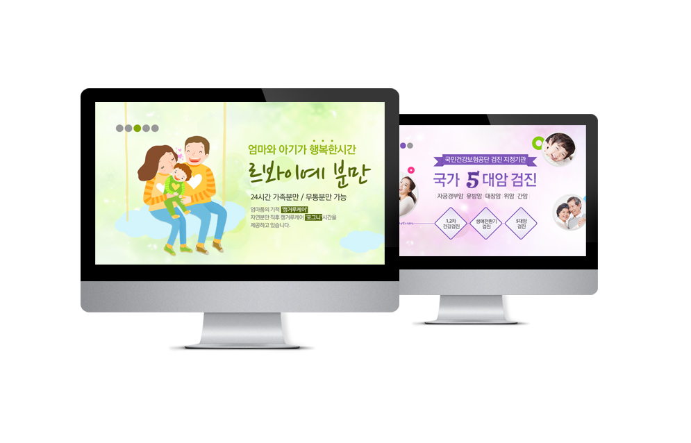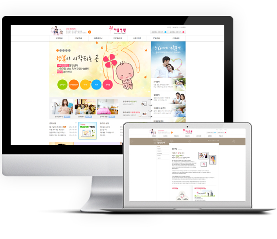따뜻한 봄날같은 느낌의 일러스트를 활용하여 아름병원의 이미지를 더욱 높였음.